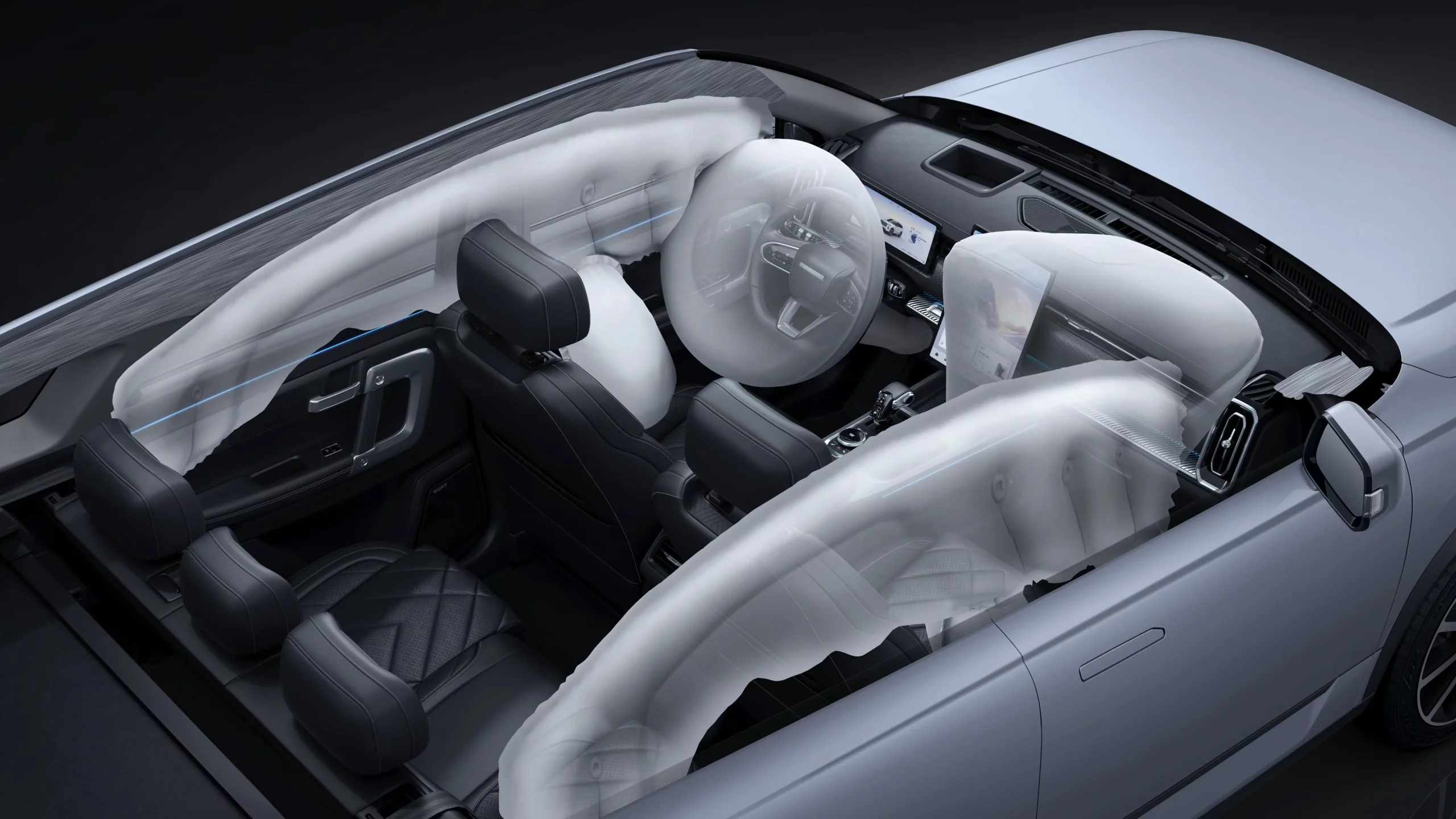 8 airbags, Driver Monitoring System, Tyre Pressure Monitoring, Hill Assist, and a full suite of ADAS — including AEB, ACC, Blind Spot Detection, Lane Keeping, and Traffic Jam Assist.